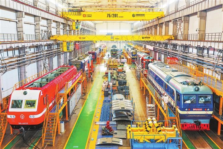 中車蘭州公司總裝車間,各條產(chǎn)線有序生產(chǎn)。